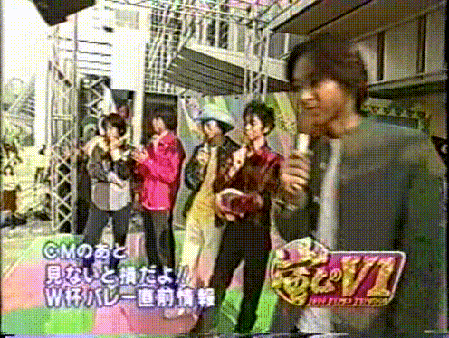 Arashi observes and participates in the practice of the 1999 World Cup Volleyball players. A video broadcast is shown.