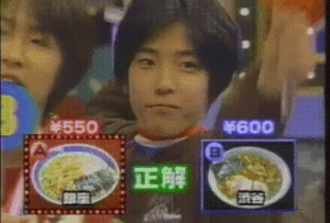 Kyoto Bistro Journey aired between 1998.04 & 1999.03, hosted by Yamada Kumiko and her "helpers", Nishikido Ryo and Yasuda Shota. The two teams are made up of pre-debut members of Kanjani8 and Arashi, along with occasional other Johnny's idols. Each 45min episode consists of a cooking contest between Tokyo Jr and Kansai Jr., similar to the Iron Chef series. In the same vein, there is a specific ingredient each episode that the Jrs have to create recipes with. They are guided by professional chefs that specialize in Western, Japanese and Chinese cooking. Working as a team, each member is in charge of one "step" in the cooking process. The results are then judged by a celebrity guest.