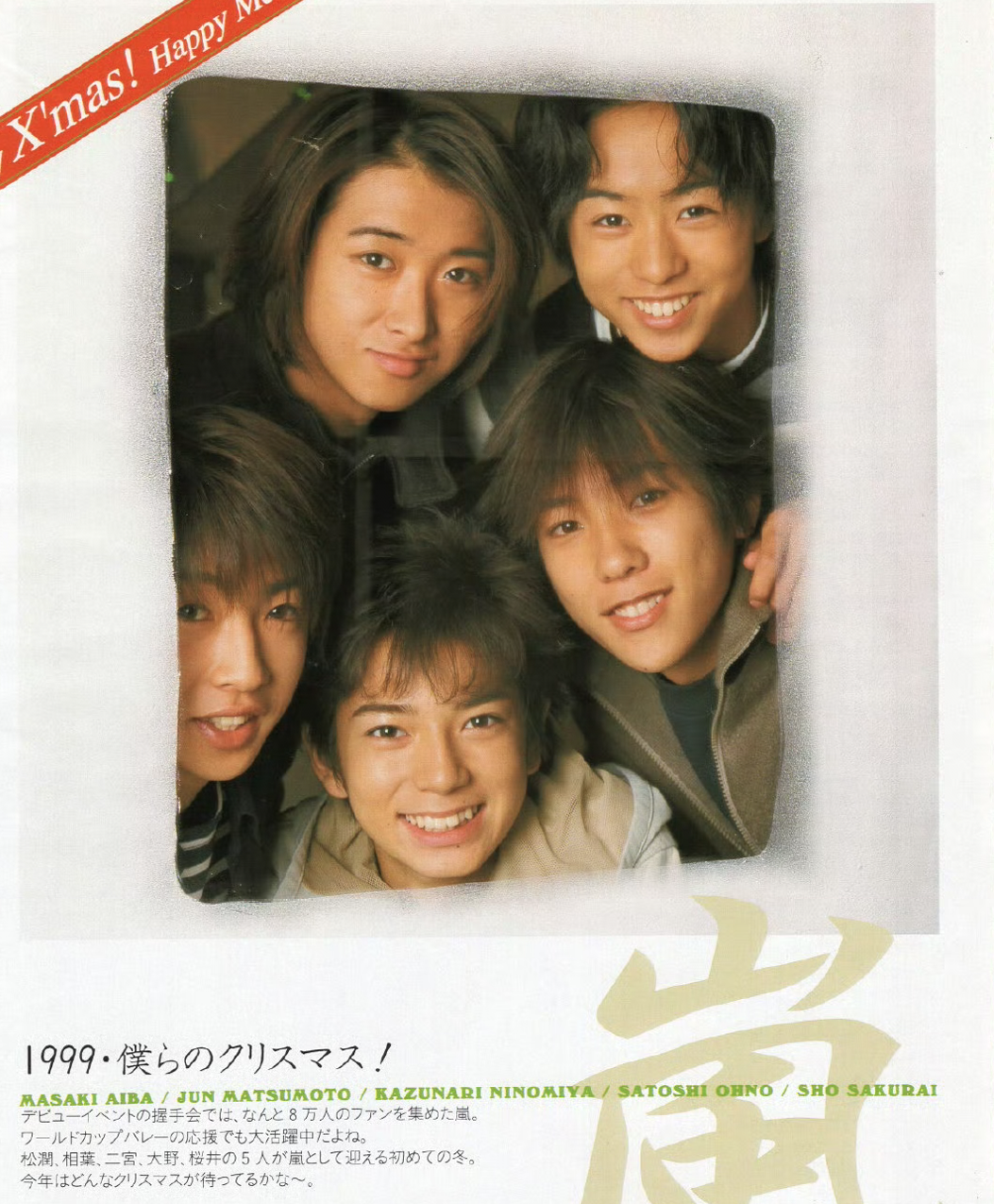 Arashi attracted a whopping 80,000 fans to the handshake event at their debut. They’re also doing a great job cheering on the Volleyball World Cup. This will be the first winter that the five members, Matsujun, Aiba, Ninomiya, Ohno, and Sakurai, will be experiencing as Arashi. I wonder what kind of Christmas awaits~