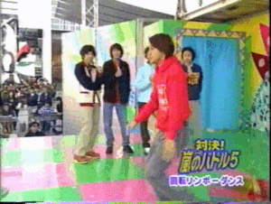- MatsuJun and Nino on location today. Jun takes on receiving serves and fails.
